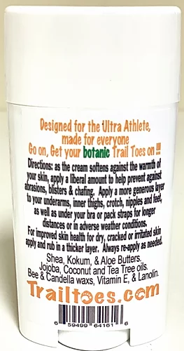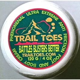 Trail Toes is a specially formulated silicon and beeswax-based product designed to protect the feet and body from the A, B, C’s (abrasions, blistering, and chafing) that can result from extreme athletic endeavors.