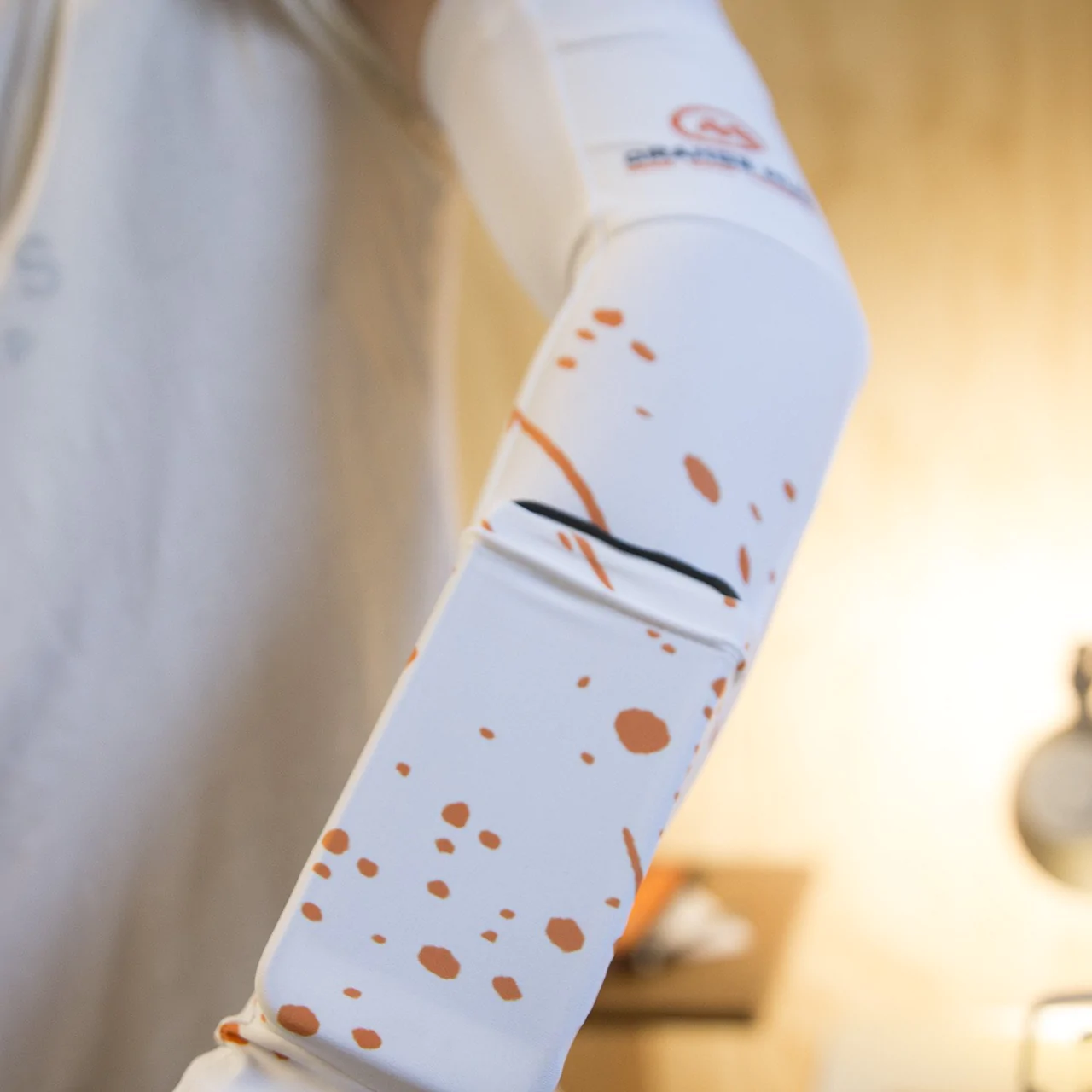 The built-in pockets for ice help to keep you cool on a run or ride, or they can hold a few gels, a phone, and nutrition. We call it the Arm Cooler. With two pockets, one on the bicep and one on the forearm, you can load in ice in a race situation to keep you cool. We often run with them on the inside of our arm to transfer cooling directly to your blood flow, but you can put them on the outside too!
